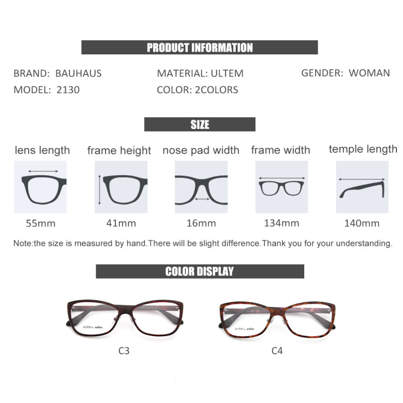 2130 Women Eyeglasses Ultem Material Optical Frame
