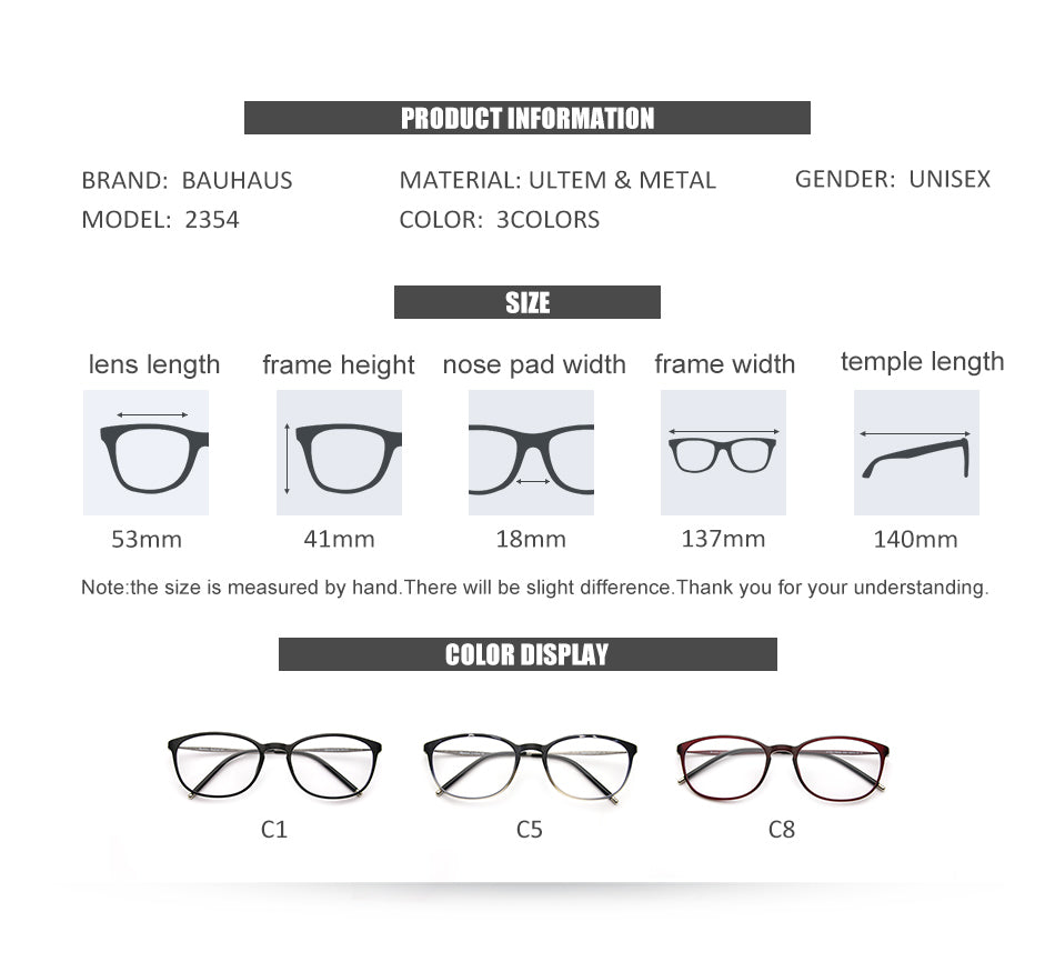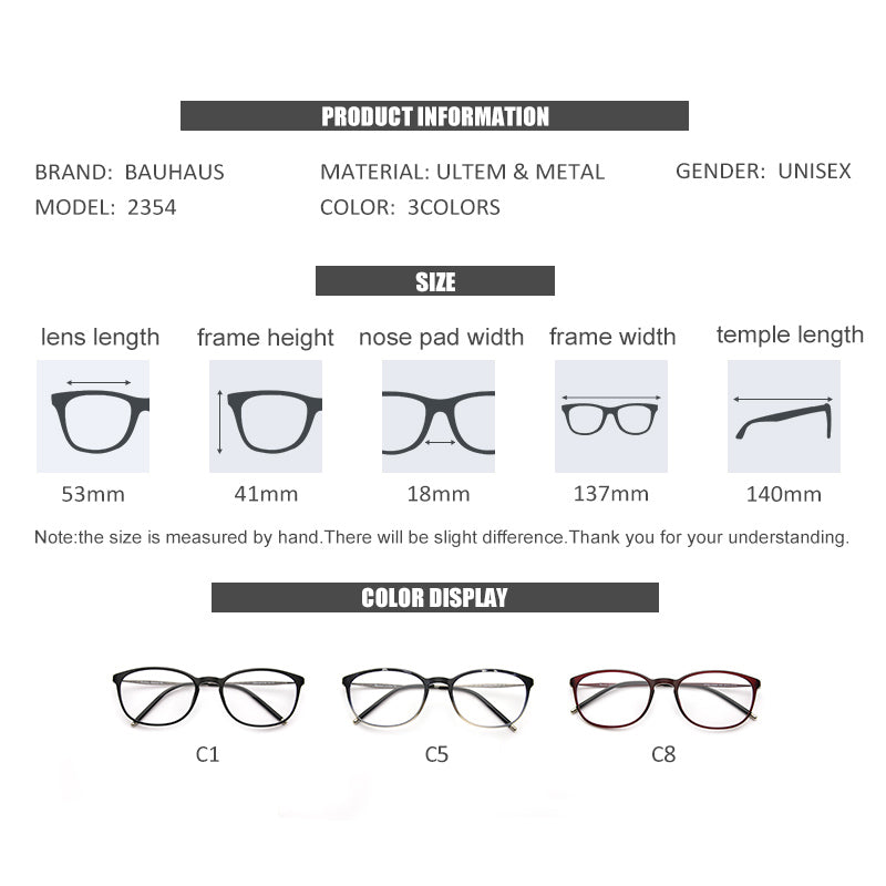 2354 Unisex Retro Round Ultem Spectacles Glasses Frame Optical