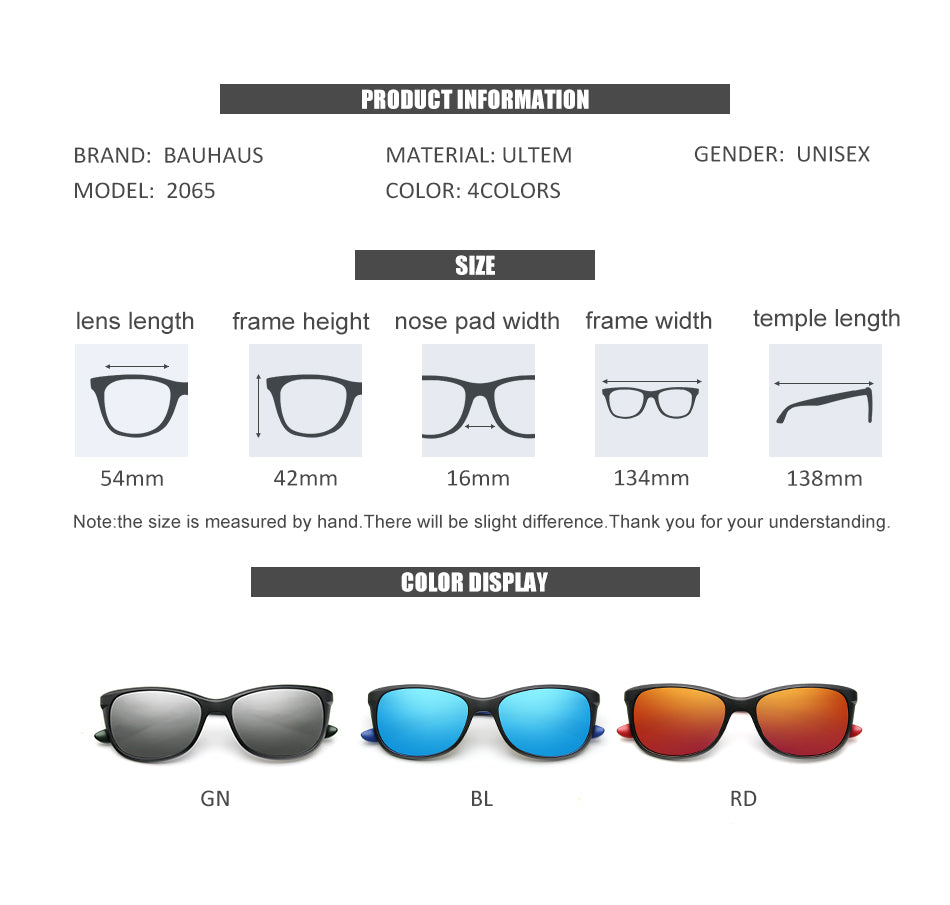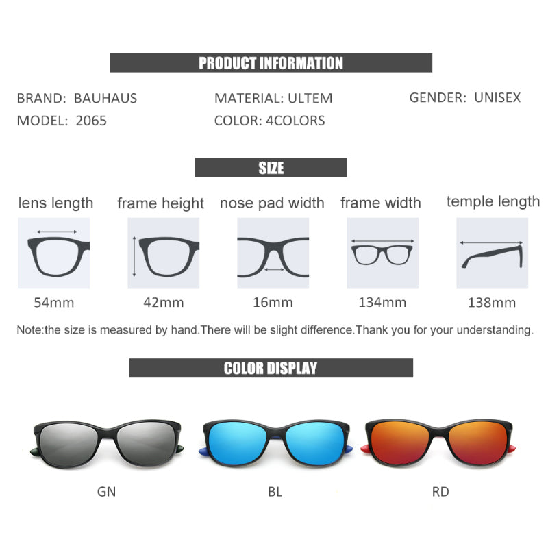 Bauhaus Unisex Sunglasses Polarized Travel Driving Mirror Sunglasses Brand Designer Square glasses