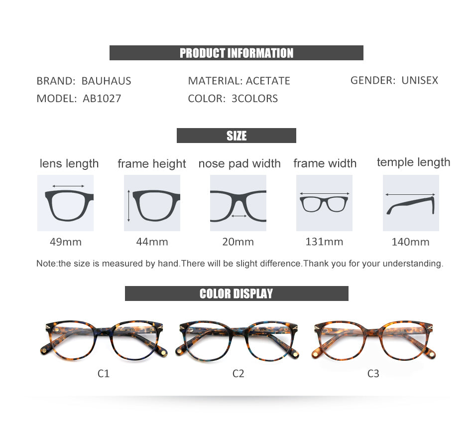 AB1027 France Design Acetate Retro Brand Eye Glasses Frames