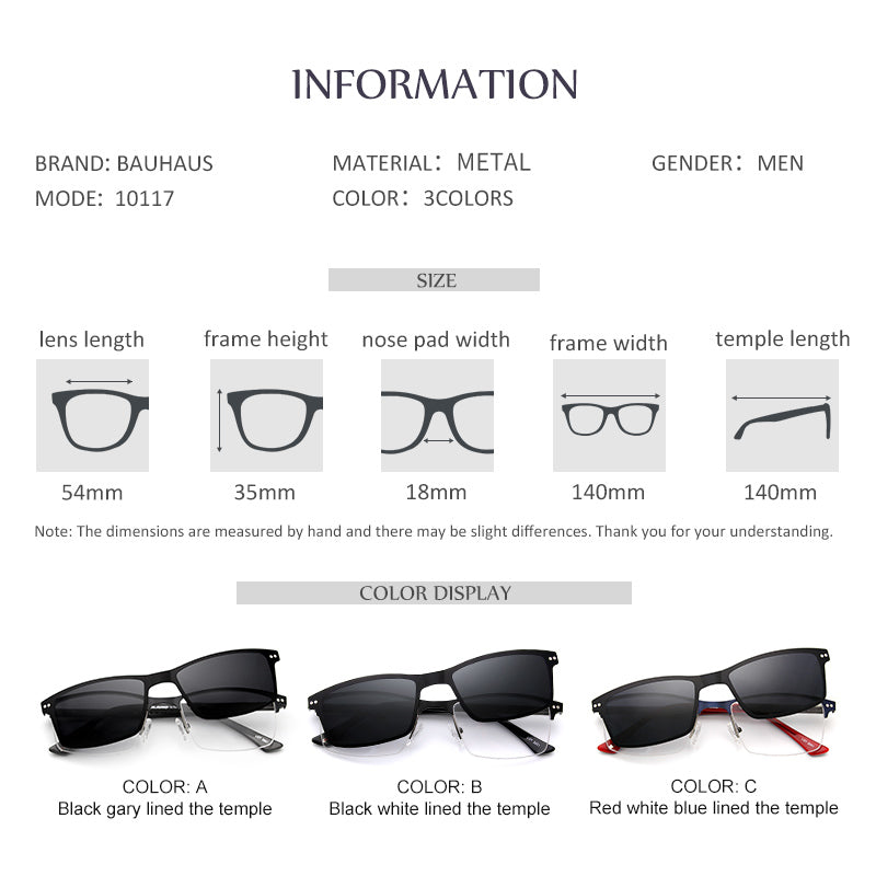 CL10117 Bauhausglasses Metal business Half Frame Magnet Optical