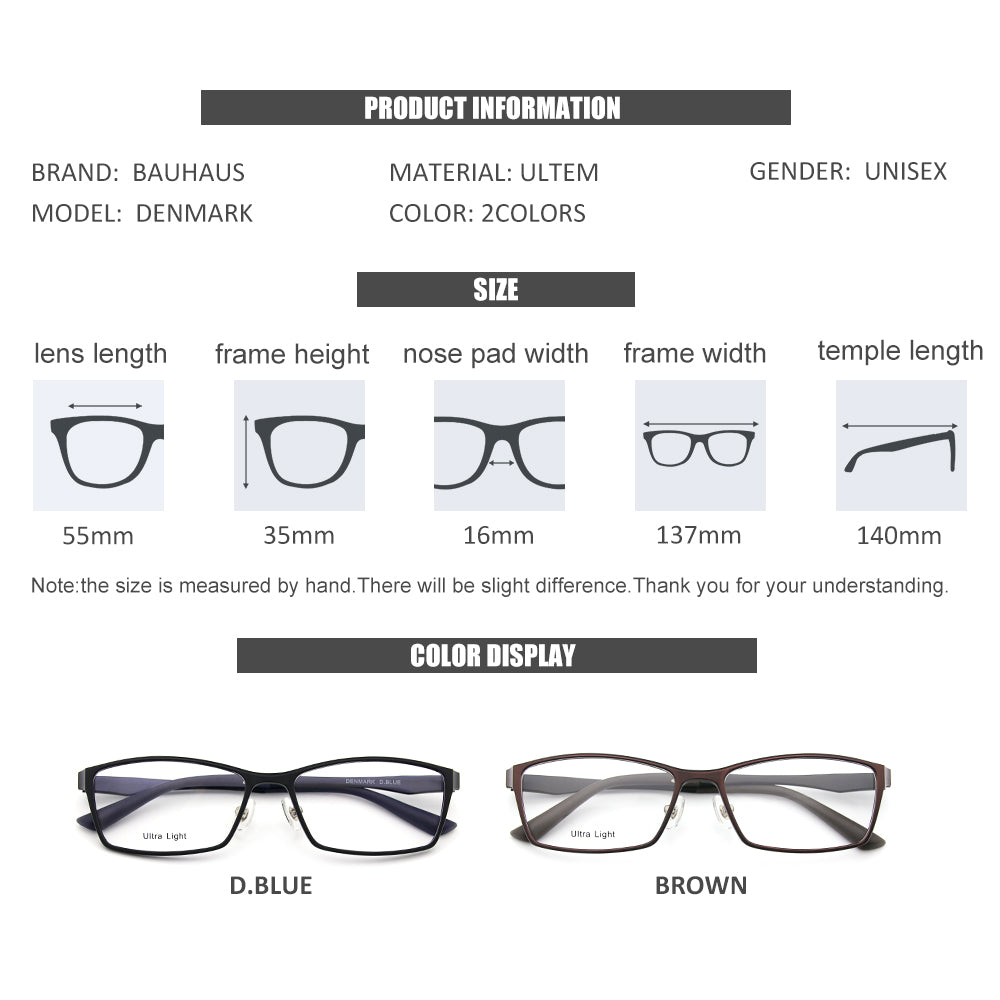 DENMARK Optical Rectangular Ultralight TR90 Business Men Glasses Frame Prescription Eyeglasses Frames Women Eyewear