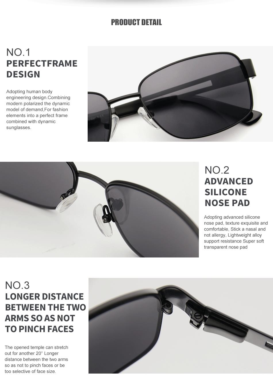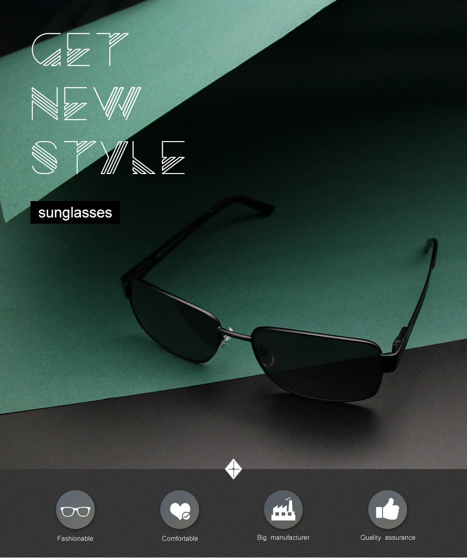 Sunglasses Men Square Black Frame Driving Travel UV400 Not To Pinch Face