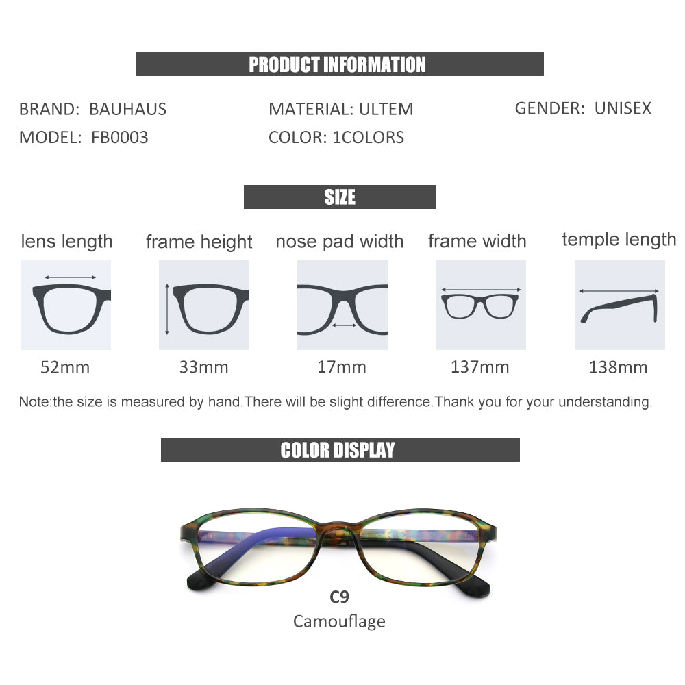 FB0003 New Arrival TR-90 Frame Glasses for Both Men and Women Styles Plastic Flexible Durable Eyewear Prescription