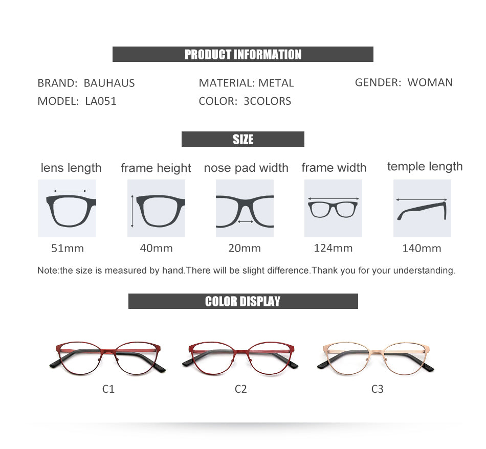 LA051 Cat Eye Designer Metal Frames Classic Glasses Optical For Women