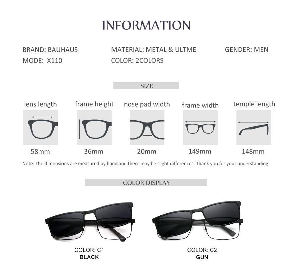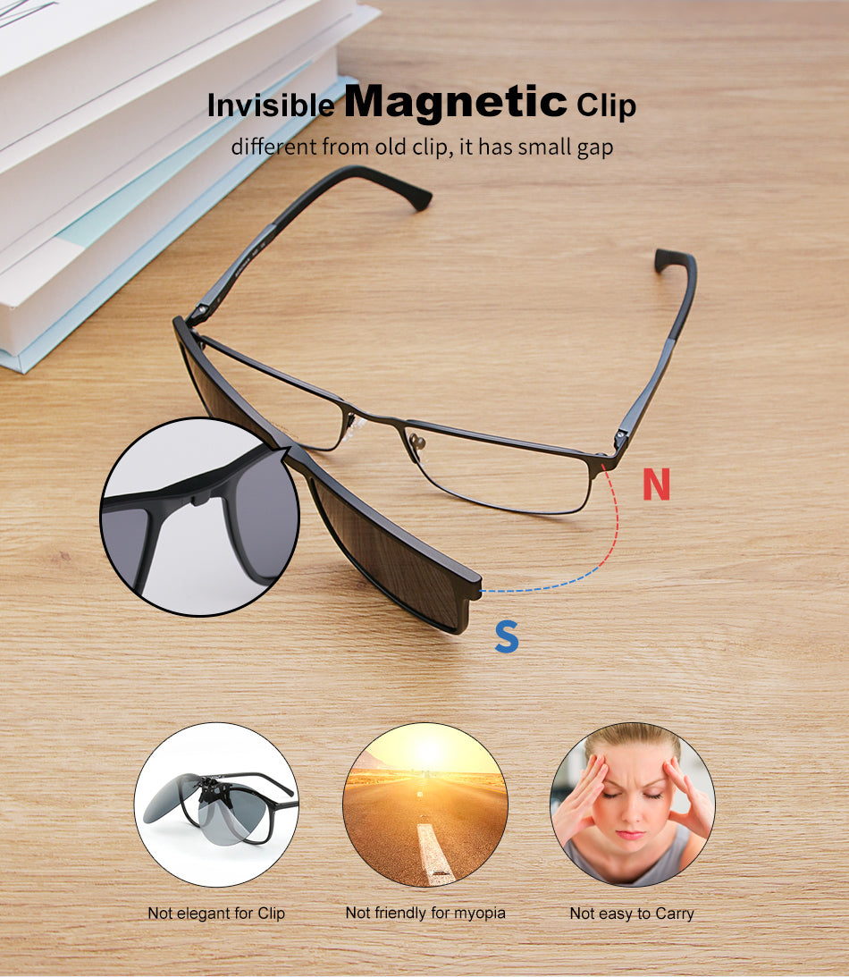 X110 Metal 2 In 1 New Style Magnet Clip On Glasses Frame Polarized Sunglasses For Men 2023 Optical Computer Glasses UV400