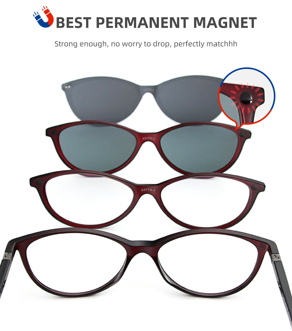 X3173 Retro Cat Eye UV400 Myopia Optical Eyeglasses Polarized Magnet