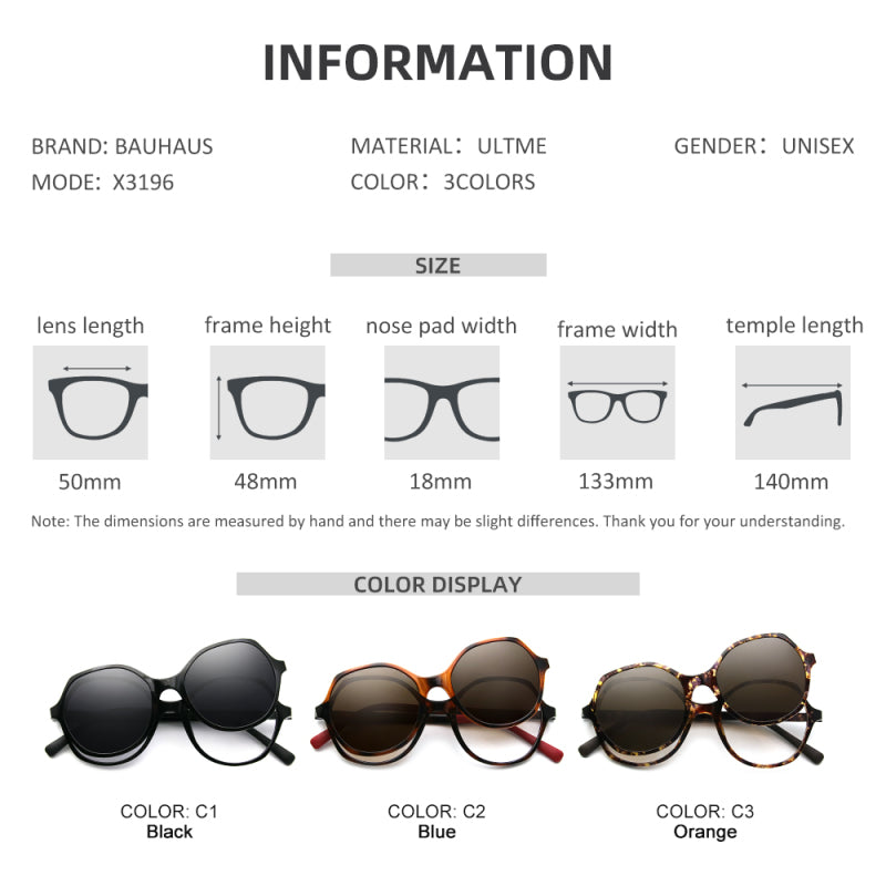 X3196 2 In 1 Magnet Clip On Glasses Trend Polarized Sunglasses UV400
